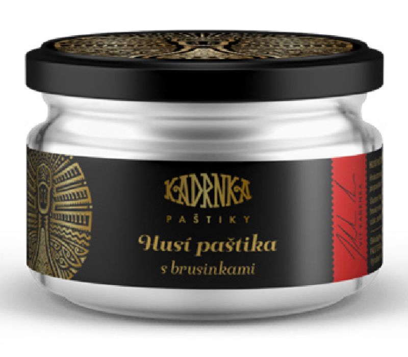 hrubozrnná paštikas výraznou chutí husího výpeku a zároveň mírně nasládlá po povidlech a brusinkách, kterými je proložena. Ideální je namazaná na celozrnném pečivu.